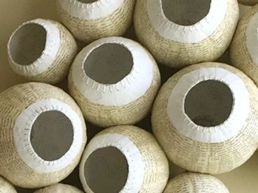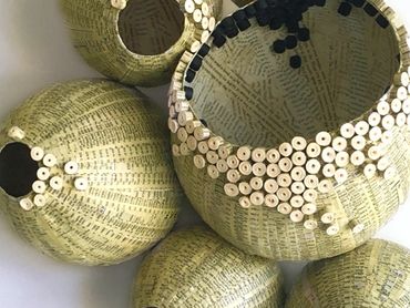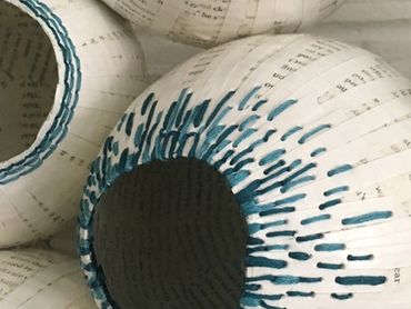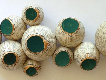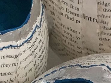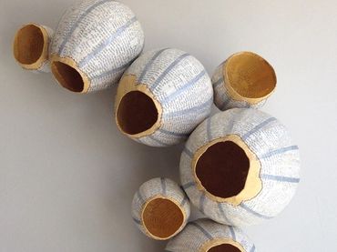 Obsolete books and artist papers are re-formed into organic, tactile vessels.