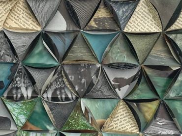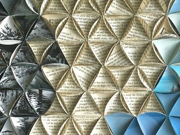 Book pages and artist papers are cut and folded into moments, then amassed into a story.